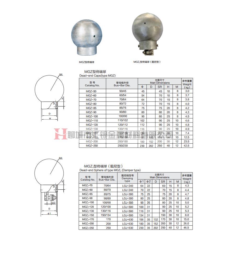 MGZ型終端球 MGZ1型終端球(阻尼型)